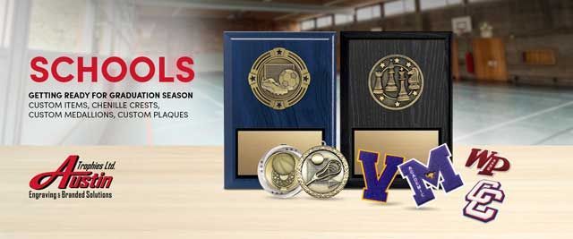 We donate our Medal of Perseverance to every elementary school within our local board. They’re awarded to children making a positive difference within the school community. We were the sponsor and supplier of the Peterborough Petes Academic Achievement Awards. Austin’s Trophies is also a sponsor of the City of Peterborough’s Civic Awards, sponsoring both the male and female Youth Volunteer Awards presented by the Mayor.